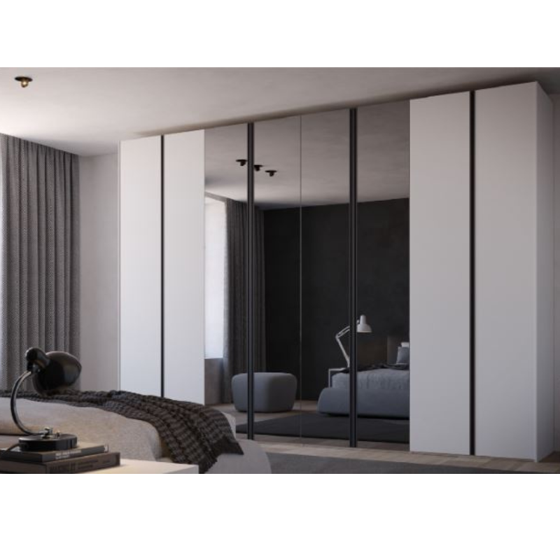 È progettabile su misura, sia in configurazione lineare sia ad angolo, per adattarsi perfettamente a ogni spazio della zona notte. La maniglia a gola in metallo integrata esalta le linee pulite dell’armadio e garantisce un’apertura pratica e discreta. Una soluzione elegante e funzionale per organizzare con stile abiti e accessori.