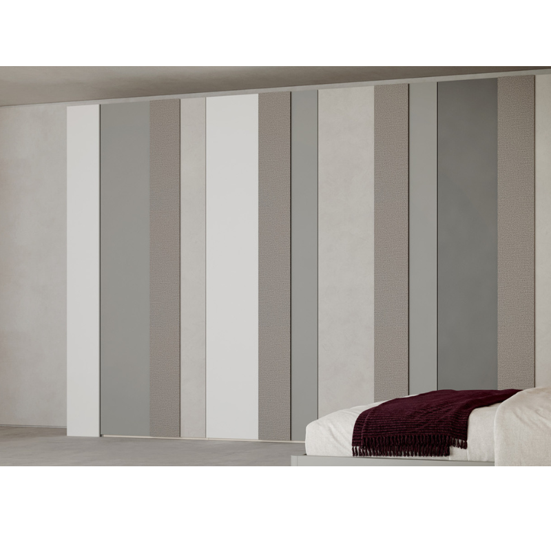 L’armadio Uno si distingue per il suo design contemporaneo e raffinato, caratterizzato da ante con inserti di maniglioni verticali che creano un elegante gioco di volumi e materiali. Le diverse finiture, armoniosamente abbinate tra toni neutri e texture materiche, donano movimento e personalità alla composizione.