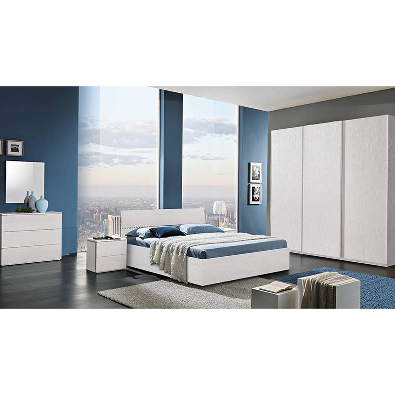 Camera completa dal design moderno e salvaspazio, composta da armadio 3 ante scorrevoli, letto matrimoniale, comò, 2 comodini e specchiera.