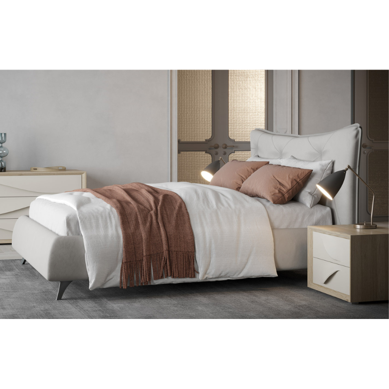 La Camera Matrimoniale Line è una soluzione completa dal design moderno ed elegante, pensata per arredare la zona notte con stile e funzionalità. Il contrasto tra le finiture calce e noce dark crea un effetto estetico raffinato e contemporaneo, perfetto per ambienti moderni e accoglienti.