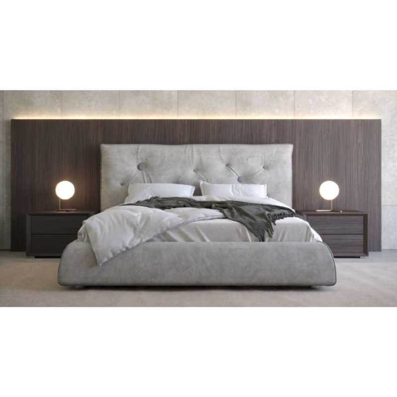 Il letto matrimoniale Roger con contenitore, disponibile con rivestimento in tessuto o ecopelle, offre uno spazio pratico per riporre biancheria e oggetti, mantenendo la stanza sempre ordinata.