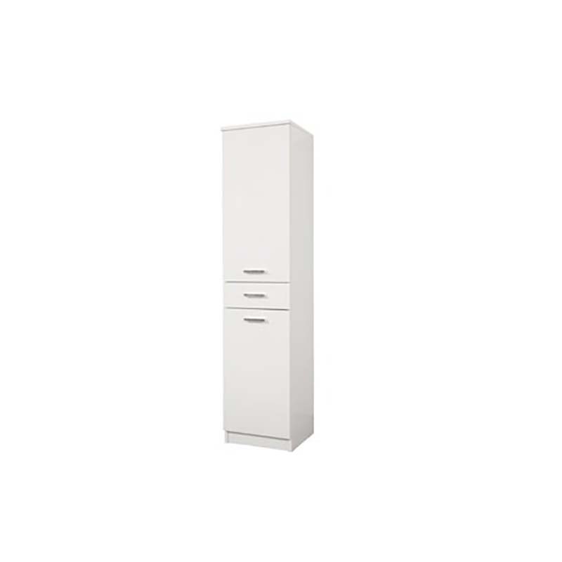 Colonna multiuso un anta della linea Classica è realizzata totalmente in laccato bianco lucido. I cassetti presenti nella composizione sono dotati di sistema di rallentamento della chiusura e la maniglia è in metallo. La colonna multiuso della linea Classica non è dotata di piedini ma di uno zoccolo quindi poggia direttamente a terra.