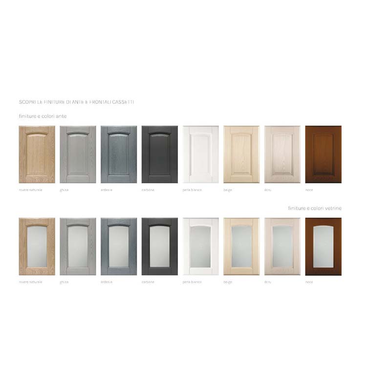 Realizzata con anta in massello di frassino spessore 24 mm, la cucina Olimpia valorizza le venature naturali del legno grazie a lavorazioni artigianali e a un ciclo completo di verniciatura con vernici ecologiche all’acqua.