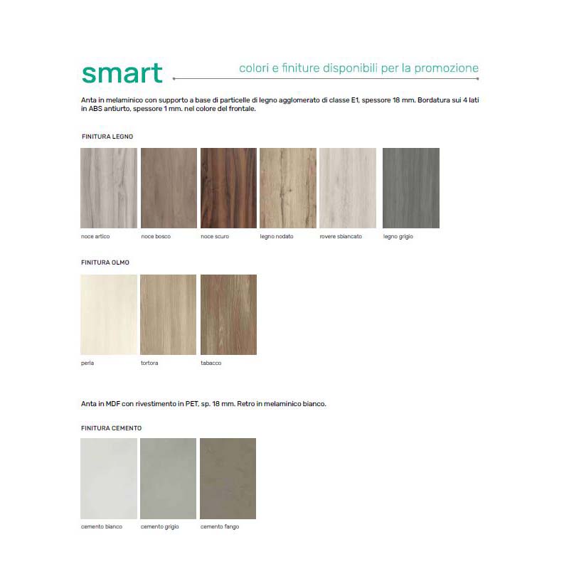 - LEGNO: noce artico, noce scuro, noce bosco, legno nodato, rovere sbiancato, legno grigio.