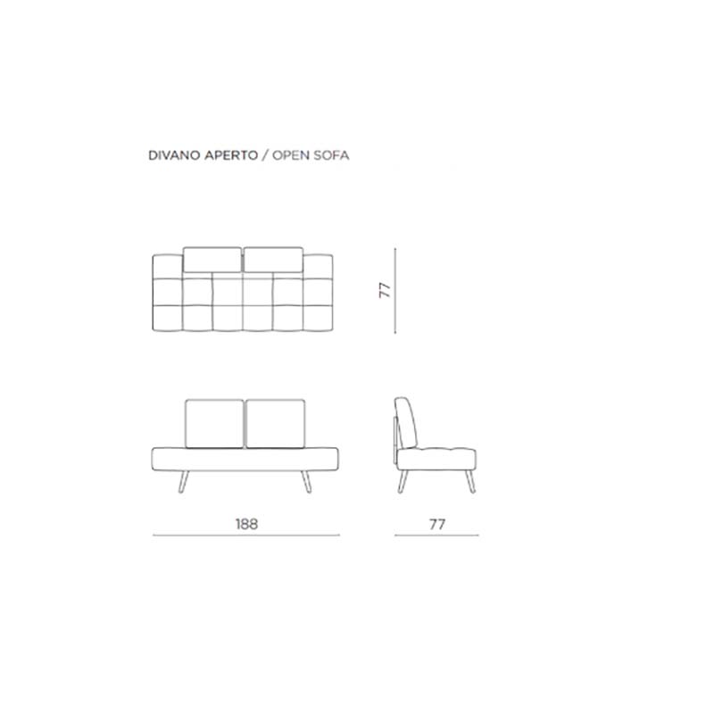 • Dimensioni Aperto: Larghezza 188 cm/ Profondita’ 77 cm / Altezza 88 cm
