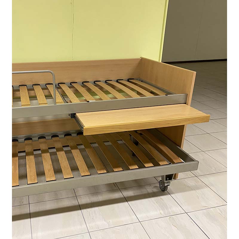 I letti estraibili con scrivania sono il complemento d’arredo più adatto per chi dispone di poco spazio a disposizione. Il letto inferiore si muove avanti e indietro grazie alle ruote. Il letto superiore è accessibile tramite scaletta esterna. A completare la struttura si può estratte un piano scrivania all’evenienza.