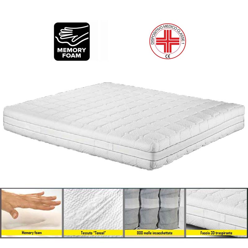 La composizione molecolare di questi materiali li rende completamente anallergici e antibatterici. Anche l’utilizzo per imbottiture e rivestimenti di fibre e tessuti con le stesse prerogative conferiscono a questo tipo di materasso memory la qualifica di strumento sanitario certificato dispositivo medico come spieghiamo nel’articolo che puoi leggere quiIl materasso Free Town rispetta le caratteristiche per rientrare nella categoria con il presidio medico con cui si può agevolare di una detrazione del 19%