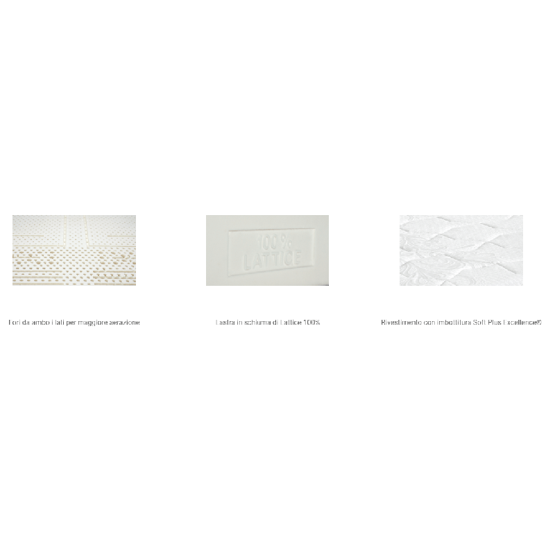 La lastra in schiuma di Lattice 100% a 7 zone a portanza differenziata lo rende anatomico, accogliente e accompagna il corpo in ogni suo movimento, ottenendo un elevato grado di comfort.