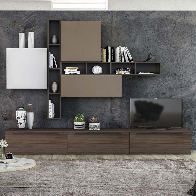 Parete Soggiorno Formentera, composizione fresca e moderna. Disponibile in due varianti di colore. Componibile in base alle esigenze e allo spazio a disposizione.