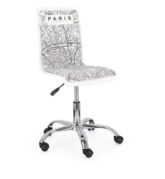 Caratteristiche: seduta in legno (laminato) rivestita in pvc. Struttura gambe in acciaio cromato, ruote in plastica (nylon).