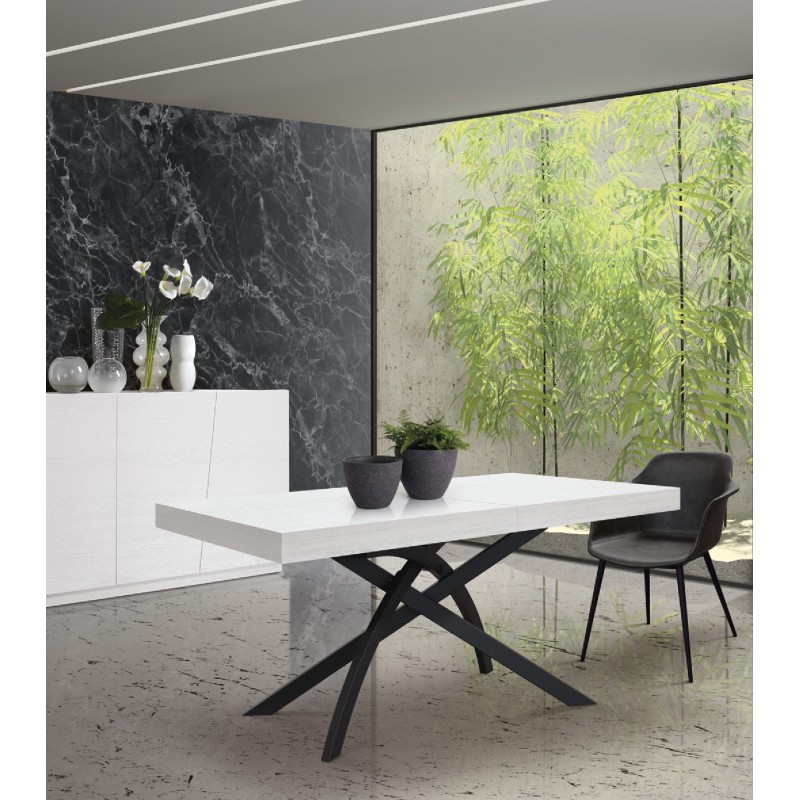 Tavolo allungabile Gambe in metallo e Piano Bianco Frassinato