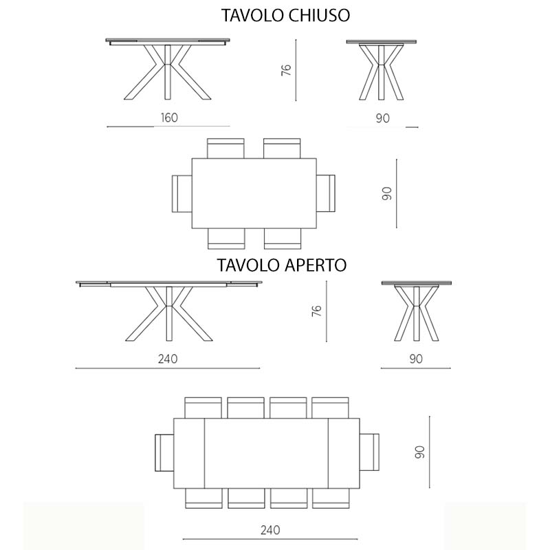 - Larghezza 160 chiuso 240 aperto X Profondità 90 x Altezza 75 cm .