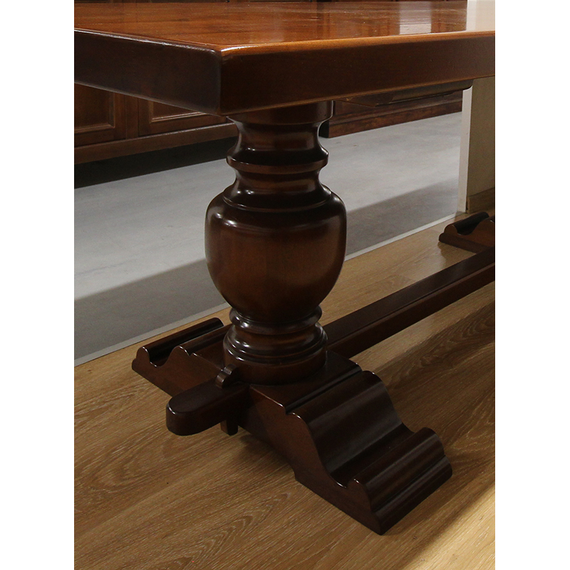 Tavolo fisso Fratino rettangolare, realizzato in legno massello, finitura noce. Il tavolo fratino è caratterizzato da due elementi essenziali: